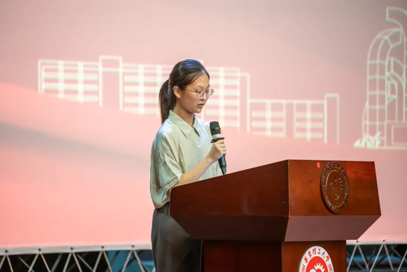 谢如锦同学作为本科生代表发言。她表达了对美丽校园、优秀老师和团结友爱的同学们的喜爱,今后将践行“勤奋求实,励志明德”的校训精神,用坚实的脚步为青春写下生动的注脚,脚踏实地、志存高远,努力成长为心怀家国、担当有为的新青年。