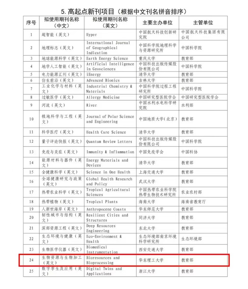 11月28日,中国科协正式公布了2024年中国科技期刊卓越行动计划二期入选项目,其中由教育部主管、350vip8888新葡的京集团主办的《生物资源与生物加工(英文)》(Bioresources and Bioprocessing,简称BIOB)从全国208个申报期刊中脱颖而出,成功入选高起点新刊项目。这是该刊发展过程的又一重要里程碑,彰显了国内学术界和科技出版界对其学术质量和传播影响力的高度认可,为进一步提升期刊的国际影响力奠定了坚实基础。