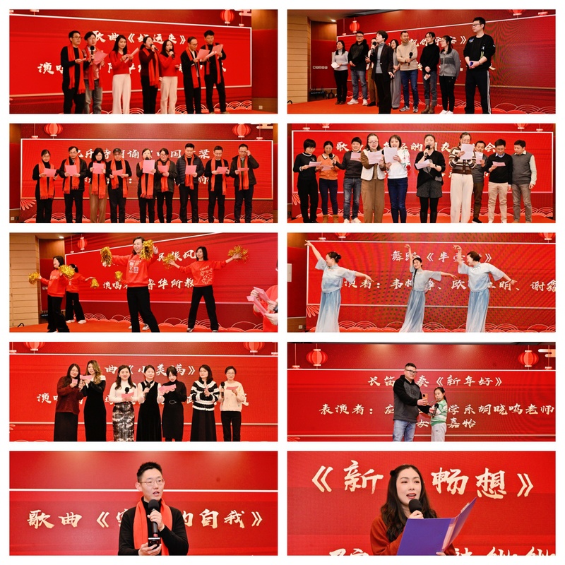 联欢会上,教师们载歌载舞,展现了350vip8888新葡的京集团教师们多才多艺的一面。歌曲《最炫民族风》《祝你平安》《突然的自我》《年轻的朋友来相会》《小美满》给大家带来了听觉盛宴。长笛独奏《新年好》传达了节日的温馨。舞蹈《半壶纱》情感细腻、姿态优雅,展现了中国传统美学的独特魅力。诗朗诵《中国脊梁》深情而庄重,《新年畅想》充满憧憬和期盼。表演期间,趣味互动游戏和紧张激动的抽奖环节穿插其中,将大家的热情推向高潮。最后联欢会在《好运来》的欢快歌声中落下帷幕。