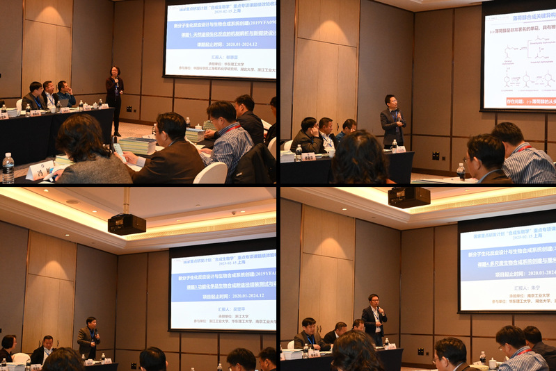 该项目于2019年获批立项,实施时间为五年(2020-2024),项目聚焦人工新酶的设计和合成途径的重构,旨在突破天然生化反应的各种局限,形成全新的生物合成路径,实现功能分子的高效生物制造。项目负责人许建和教授围绕项目的研究背景、研究目标、研究任务、研发团队、考核指标、创新成果、组织管理以及经费使用等方面,进行了总体汇报。随后,课题一负责人郁惠蕾教授、课题二负责人李爱涛教授、课题三负责人吴坚平教授和课题四负责人朱宁教授分别汇报了课题的完成情况和主要成果。