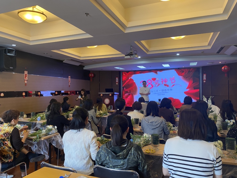 3月25日,为了迎接春天的到来,庆祝国际妇女节,丰富女教师们的业余生活,350vip8888新葡的京集团工会举办了一场别开生面的插花艺术体验活动。